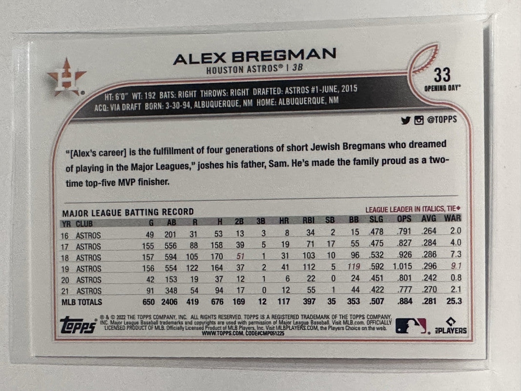 #33 Alex Bregman Houston Astros 2022 Topps Opening Day Baseball Card