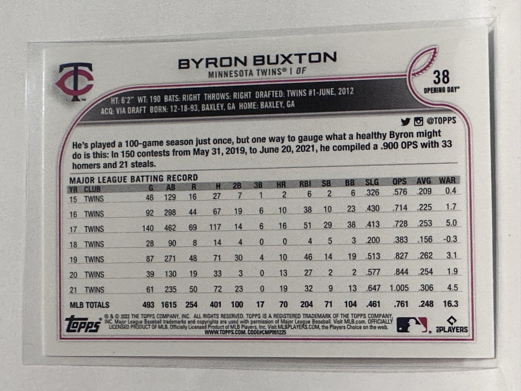 #38 Byron Buxton Minnesota Twins 2022 Topps Opening Day Baseball Card
