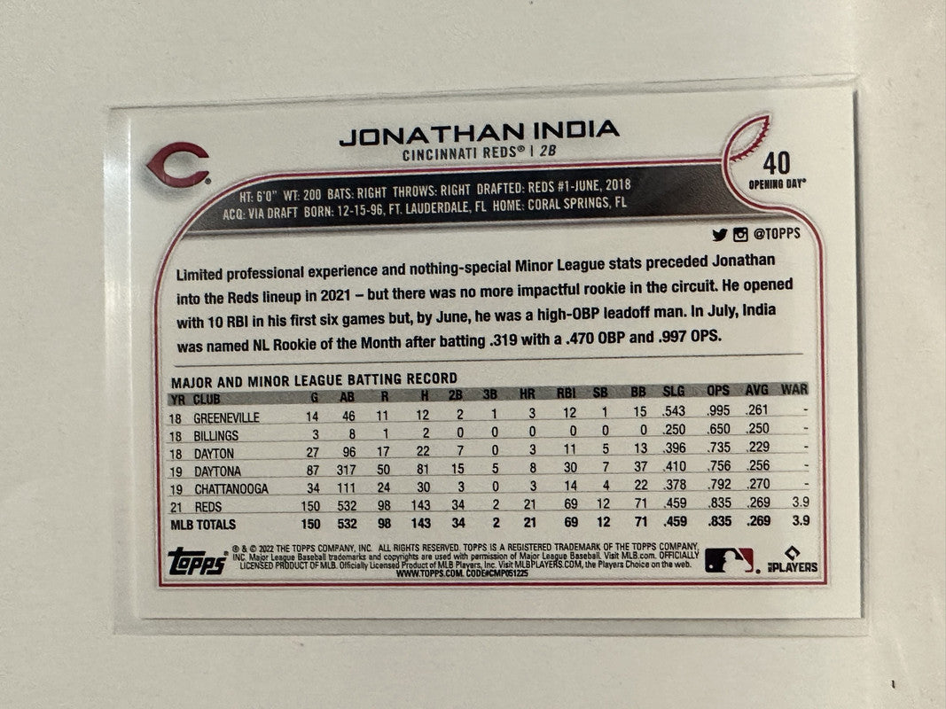 #40 Jonathan India All Star Rookie Cincinnati Reds 2022 Topps Opening Day Baseball Card