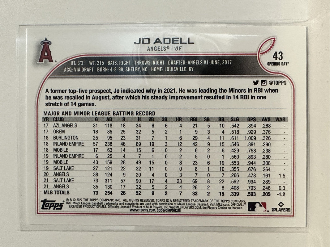 #43 Jo Adell Future Stars Los Angeles Angels 2022 Topps Opening Day Baseball Card