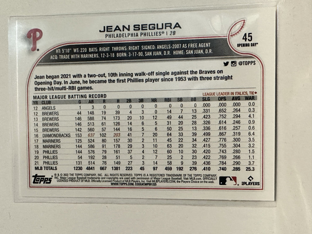 #45 Jean Segura Philadelphia Phillies 2022 Topps Opening Day Baseball Card