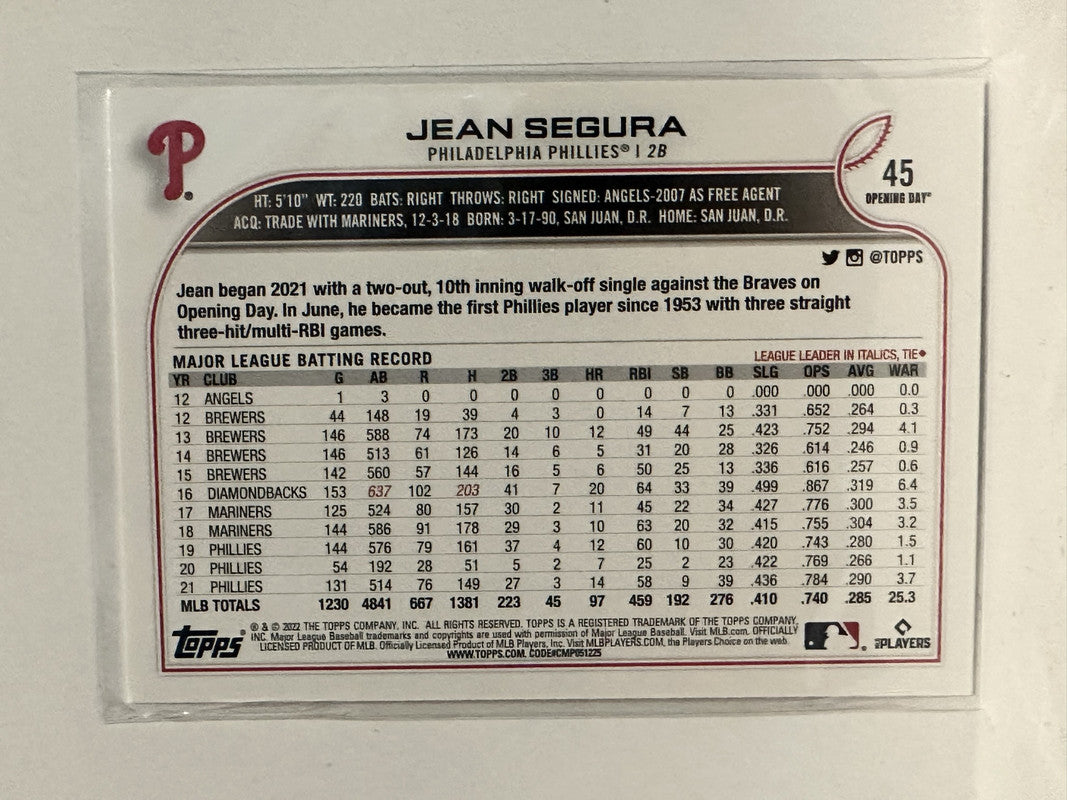 #45 Jean Segura Philadelphia Phillies 2022 Topps Opening Day Baseball Card