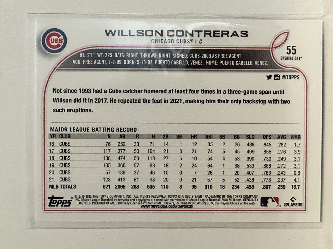 #55 Willson Contreras Chicago Cubs 2022 Topps Opening Day Baseball Card