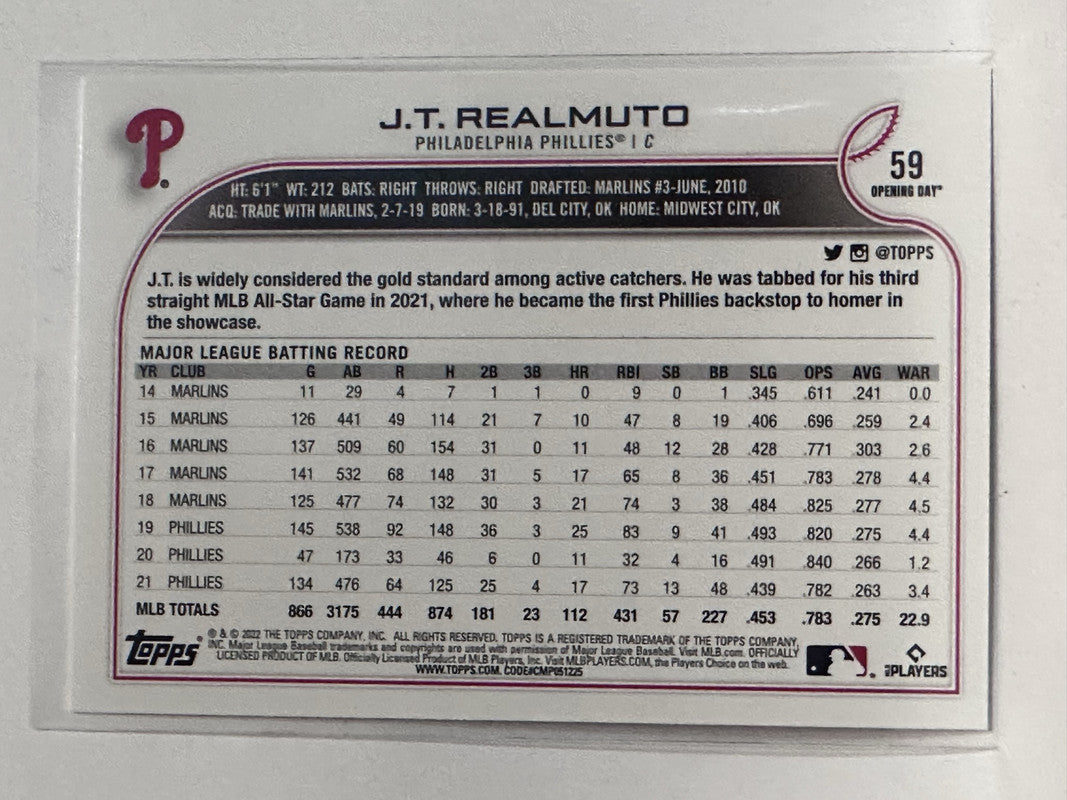 #59 J.T. Realmuto Philadelphia Phillies 2022 Topps Opening Day Baseball Card