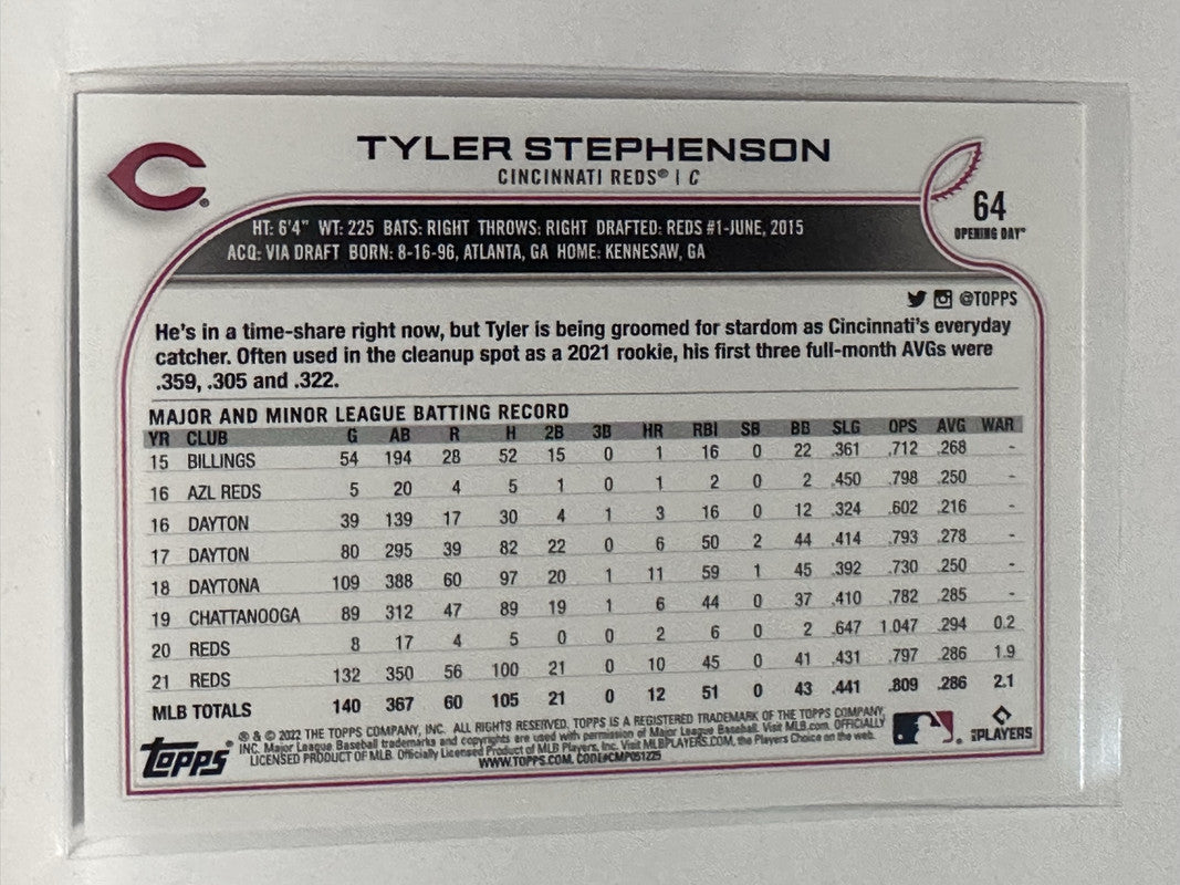 #64 Tyler Stephenson Cincinnati Reds 2022 Topps Opening Day Baseball Card