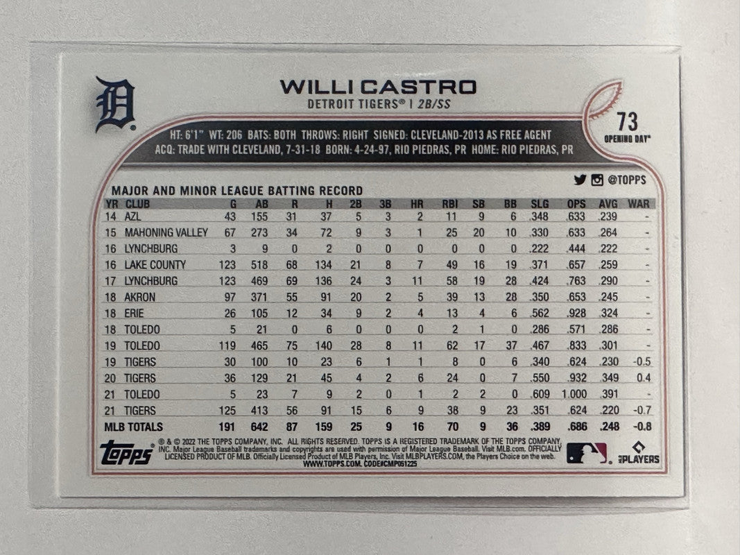 #73 Willi Castro Detroit Tigers 2022 Topps Opening Day Baseball Card