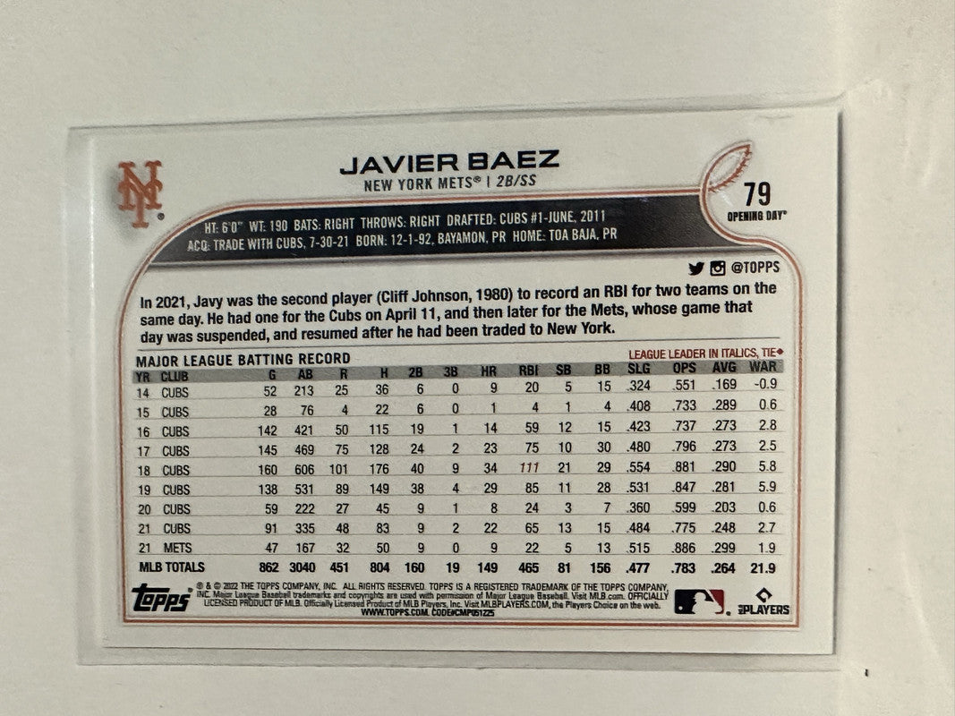 #79 Javier Baez New York Mets 2022 Topps Opening Day Baseball Card