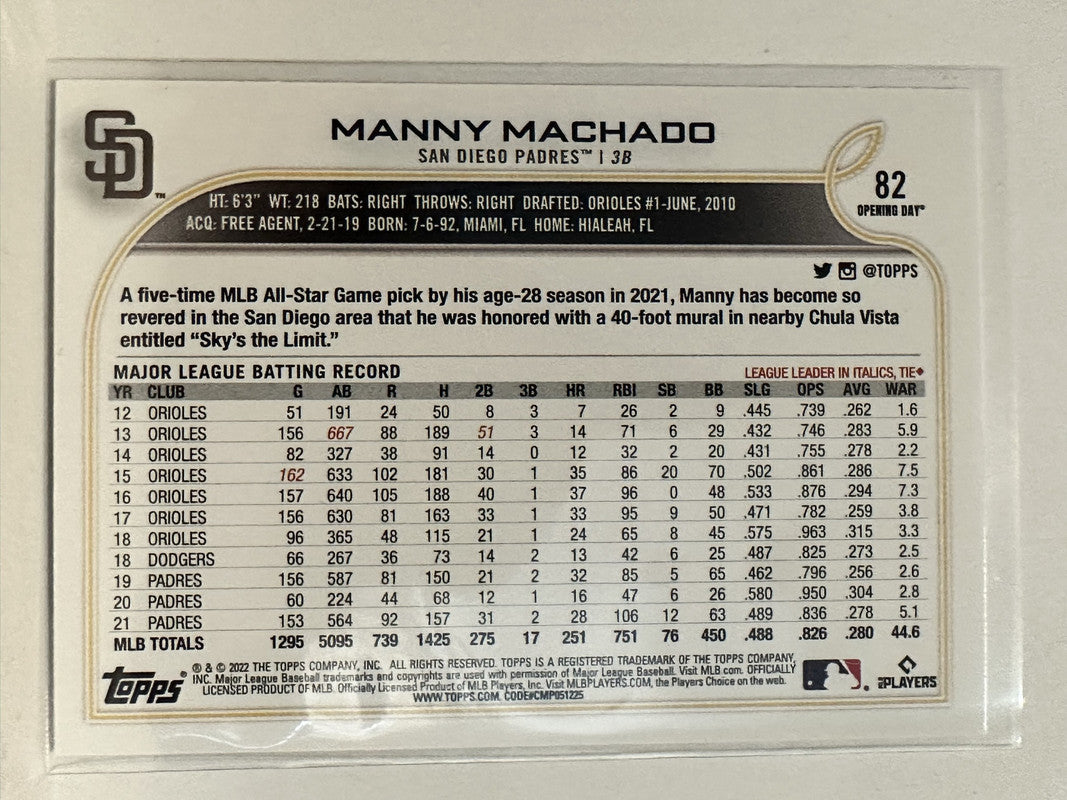 #82 Manny Machado San Diego Padres 2022 Topps Opening Day Baseball Card