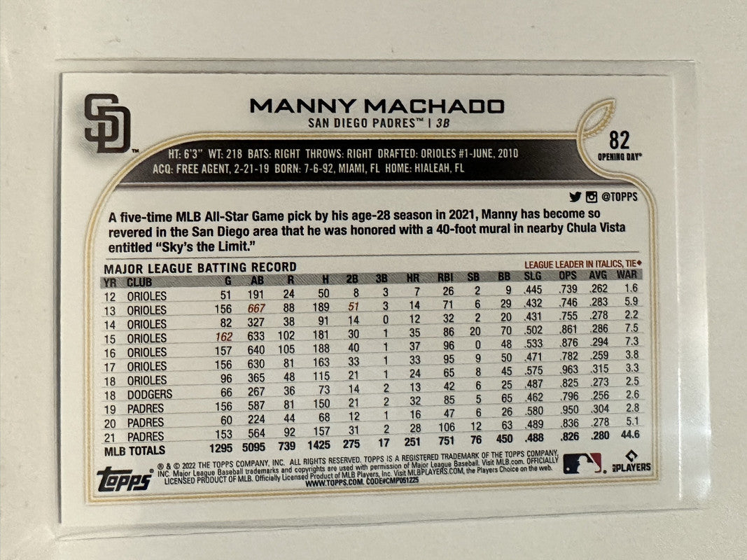 #82 Manny Machado San Diego Padres 2022 Topps Opening Day Baseball Card