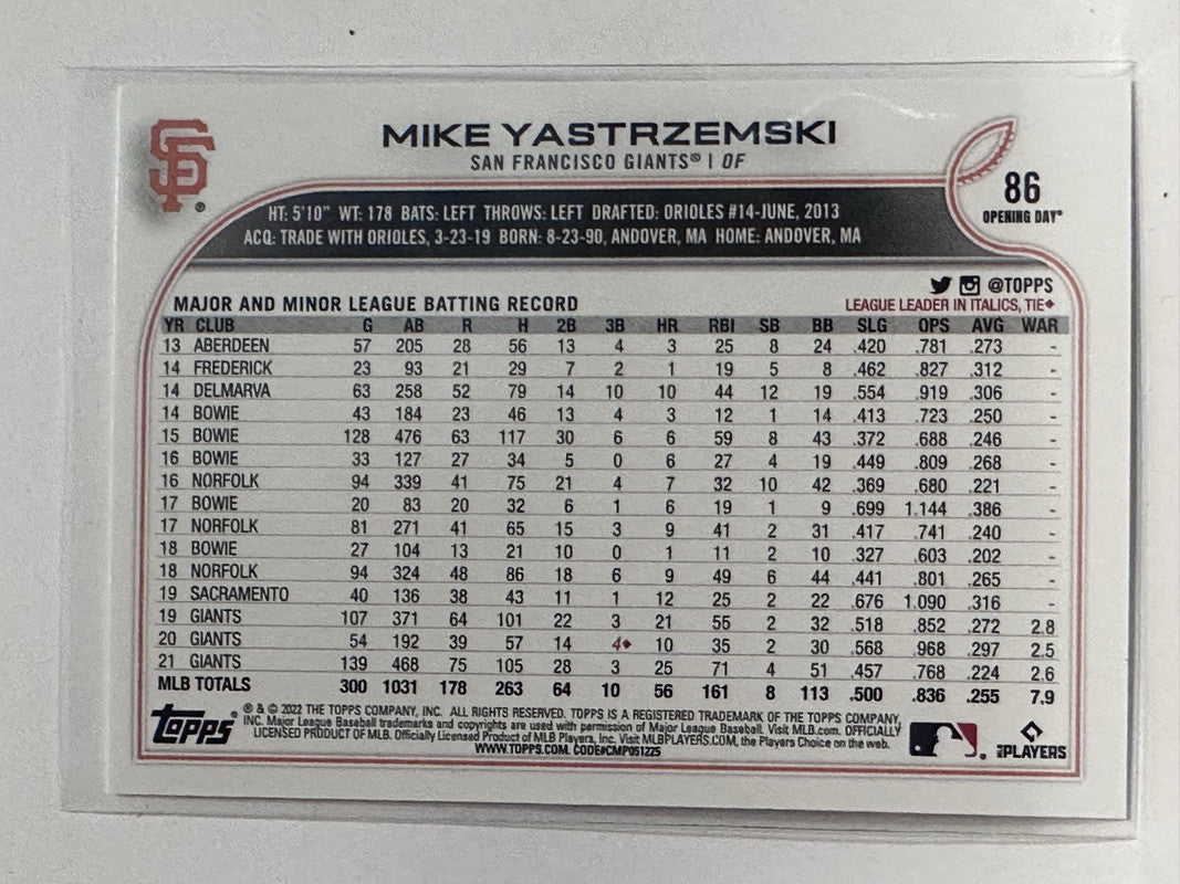 #86 Mike Yastrzemski San Francisco Giants 2022 Topps Opening Day Baseball Card