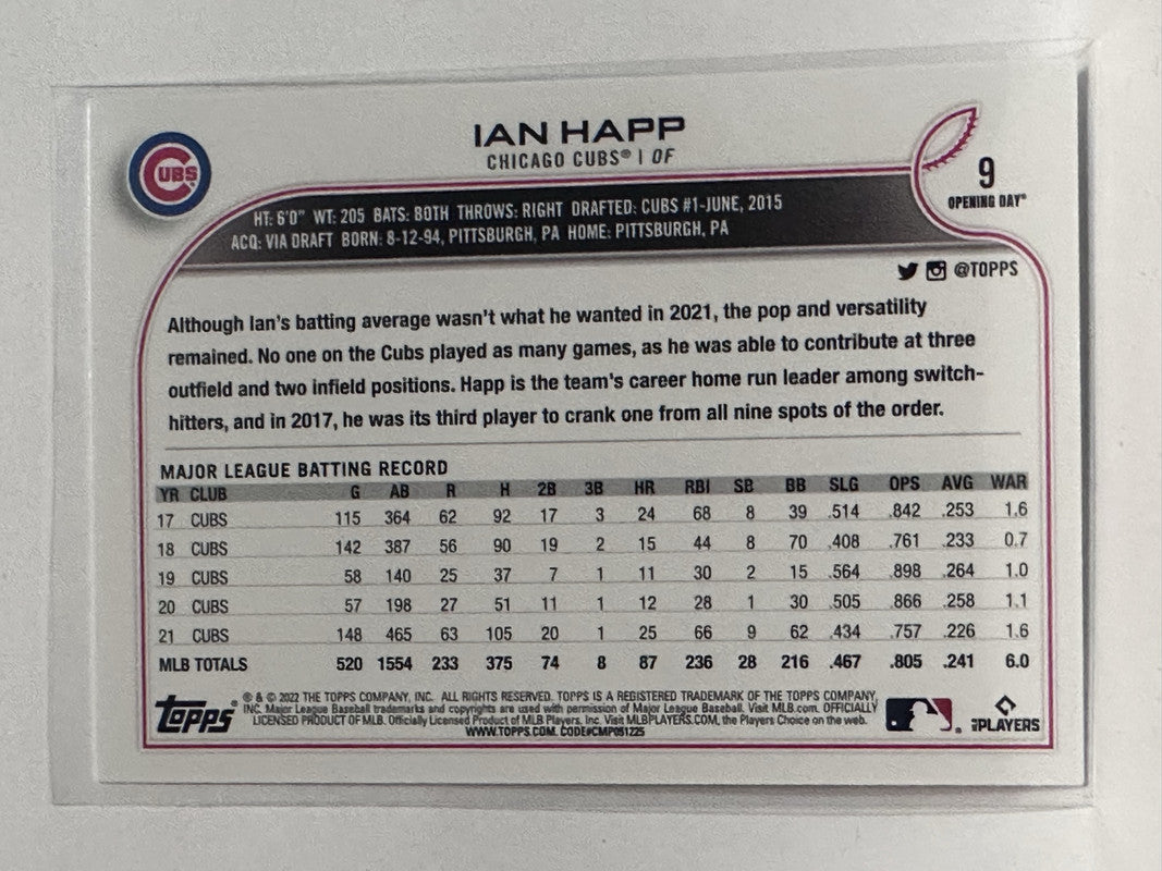 #9 Ian Happ Chicago Cubs 2022 Topps Opening Day Baseball Card