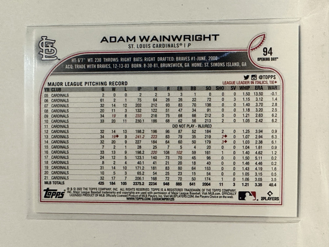 #94 Adam Wainwright St Louis Cardinals 2022 Topps Opening Day Baseball Card