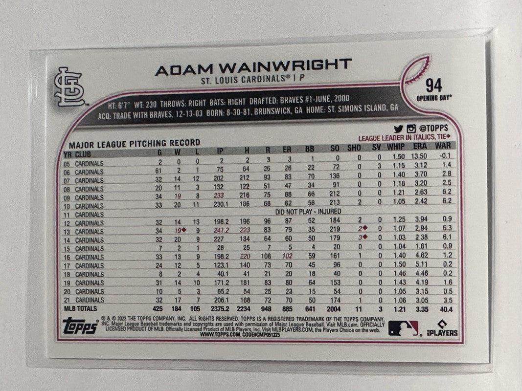 #94 Adam Wainwright St Louis Cardinals 2022 Topps Opening Day Baseball Card