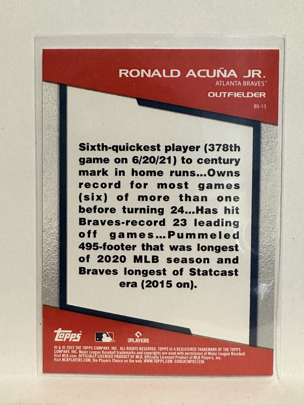 #BS-13 Ronald Acuna Jr Atlanta Braves 2022 Topps Opening Day Baseball Card