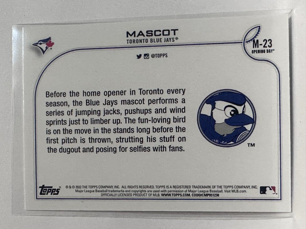 #M-23 Mascot Toronto Blue Jays 2022 Topps Opening Day Baseball Card