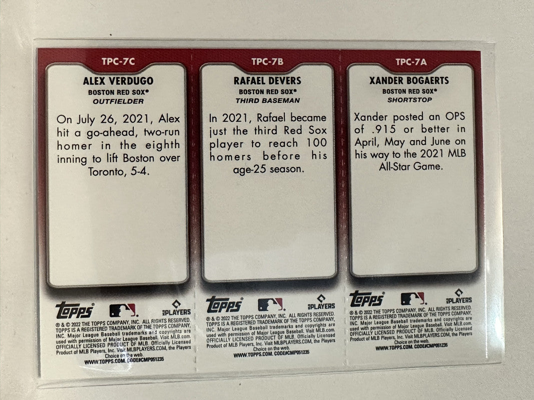 #TPC-7 A B C Alex Verdugo Rafael Devers Xander Bogaerts Boston Red Sox 2022 Topps Opening Day Baseball Card