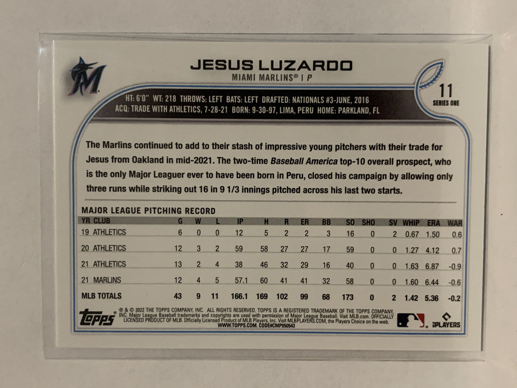 #11 Jesus Luzardo Miami Marlins 2022 Topps Series 1 Baseball Card MLB