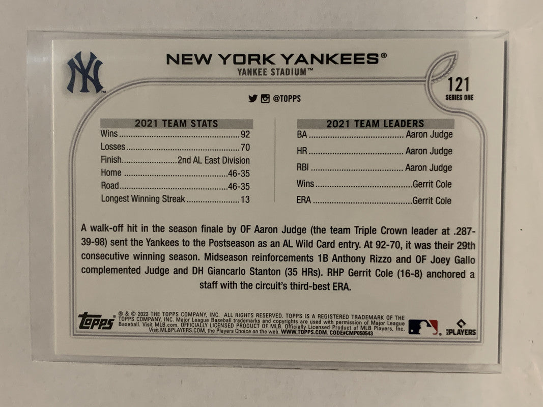 #121 Yankee Stadium New York Yankees 2022 Topps Series 1 Baseball Card MLB