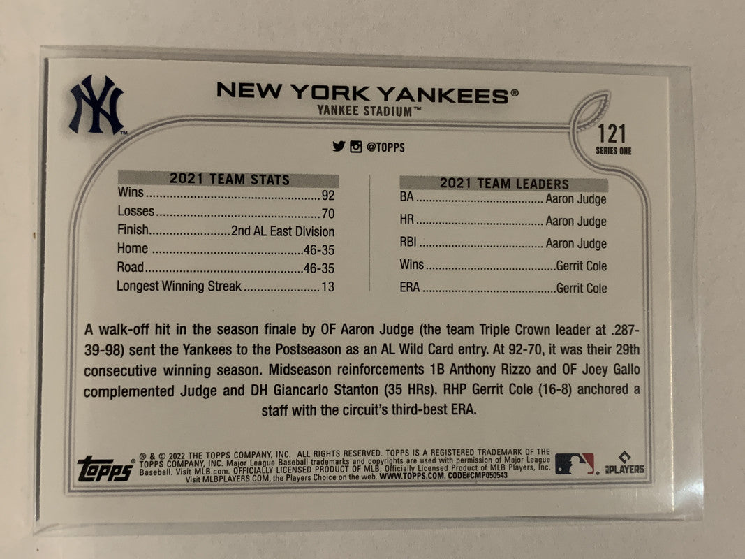 #121 Yankee Stadium New York Yankees 2022 Topps Series 1 Baseball Card MLB