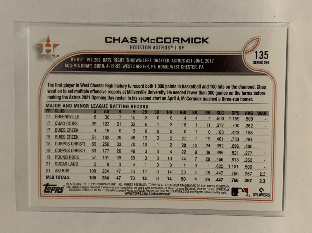 #135 Chas McCormick Rookie Houston Astros 2022 Topps Series 1 Baseball Card MLB