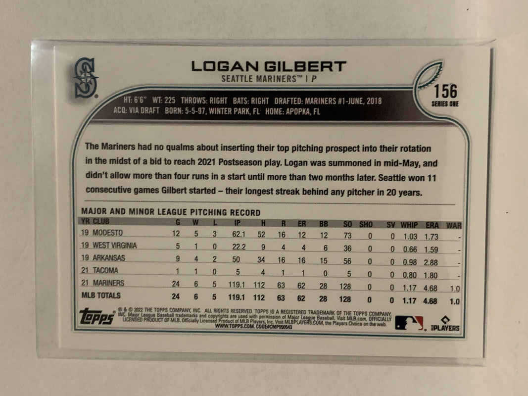 #156 Logan Gilbert Future Stars Seattle Mariners 2022 Topps Series 1 Baseball Card MLB