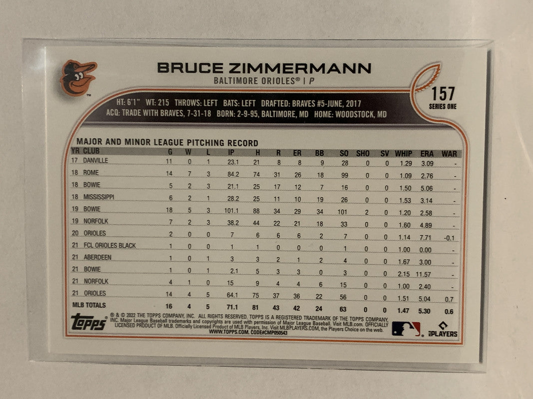 #157 Bruce Zimmerman Baltimore Orioles 2022 Topps Series 1 Baseball Card MLB