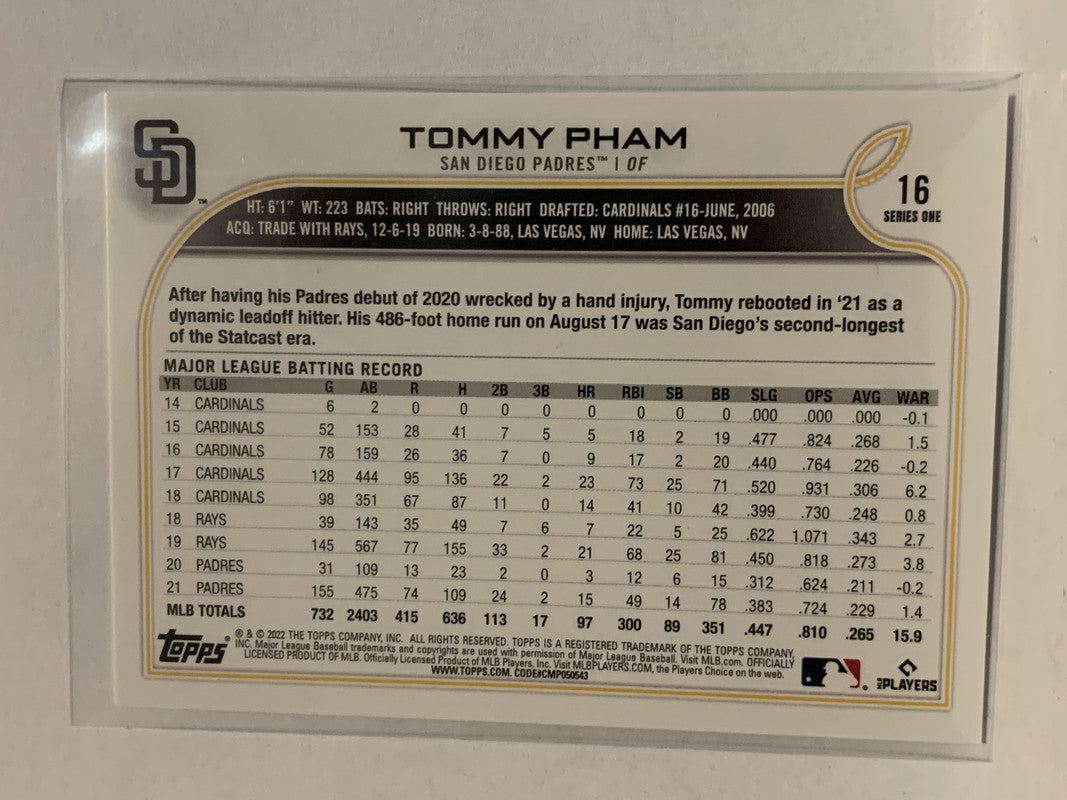 #16 Tommy Pham San Diego Padres 2022 Topps Series 1 Baseball Card MLB