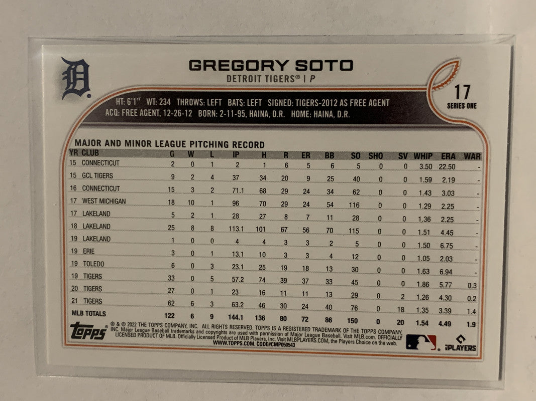 #17 Gregory Soto Detroit Tigers 2022 Topps Series 1 Baseball Card MLB