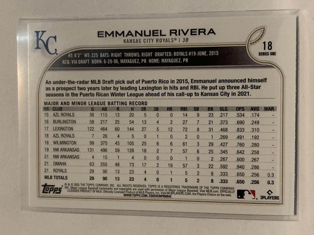 #18 Emmanuel Rivera Rookie Kansas City Royals 2022 Topps Series 1 Baseball Card MLB
