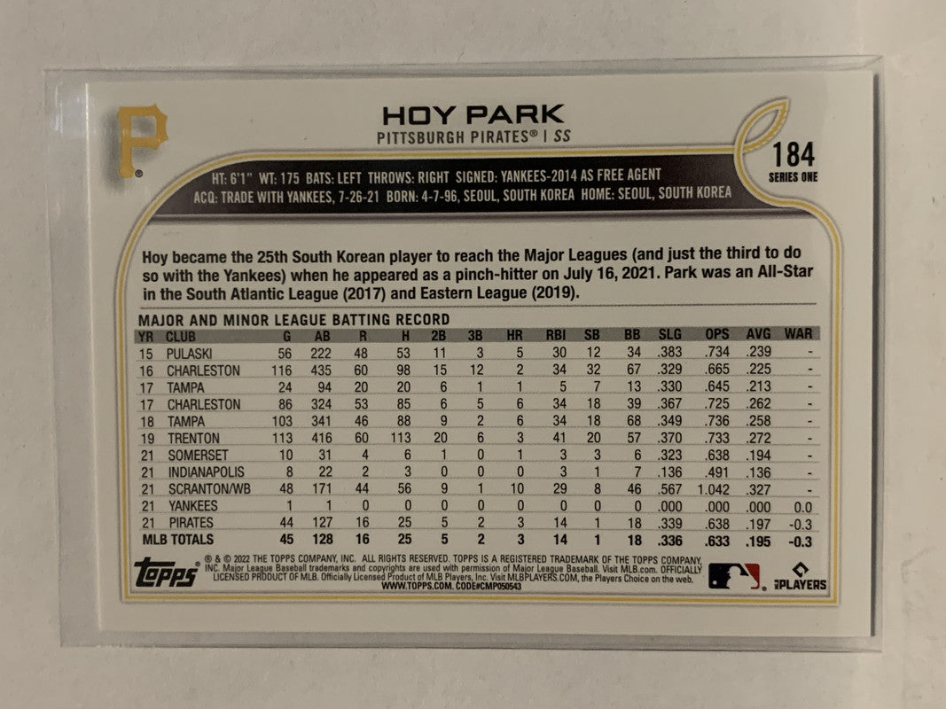 #184 Hoy Park Rookie Pittsburgh Pirates 2022 Topps Series 1 Baseball Card MLB