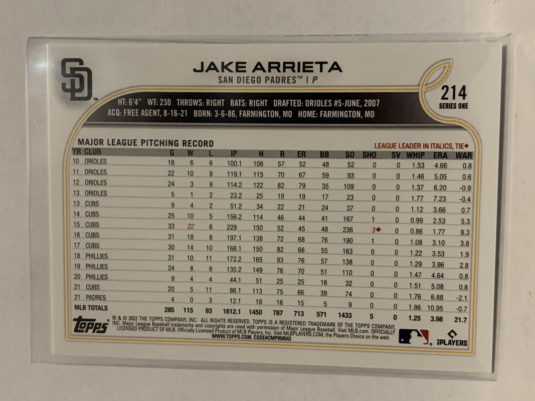 #214 Jake Arrieta San Diego Padres 2022 Topps Series 1 Baseball Card MLB