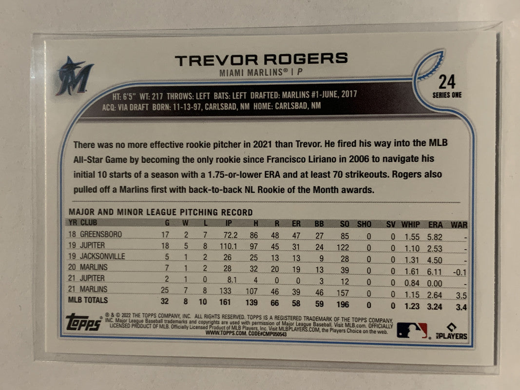 #24 Trevor Rogers All Star Rookie Miami Marlins 2022 Topps Series 1 Baseball Card MLB