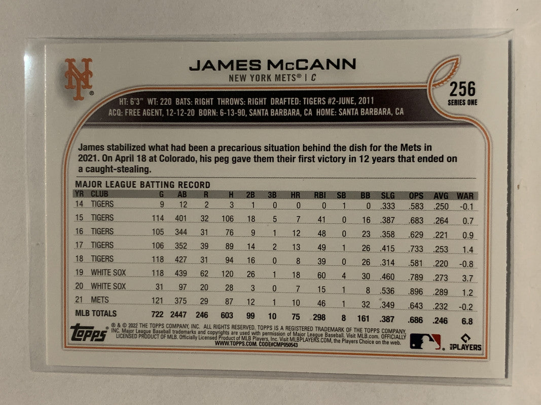 #256 James McCann New York Mets 2022 Topps Series 1 Baseball Card MLB