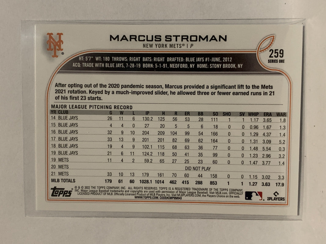 #259 Marcus Stroman New York Mets 2022 Topps Series 1 Baseball Card MLB