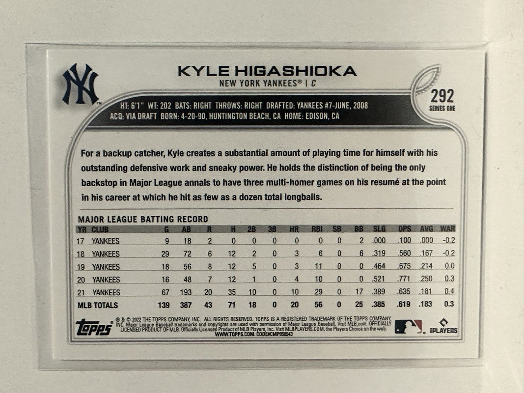 #292 Kyle Higashioka New York Yankees 2022 Topps Series One Baseball Card