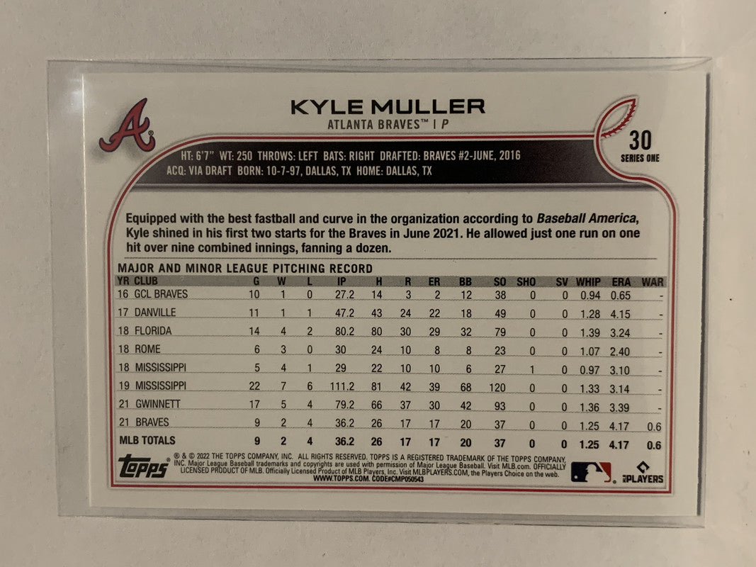 #30 Kyle Muller Rookie Atlanta Braves 2022 Topps Series 1 Baseball Card MLB