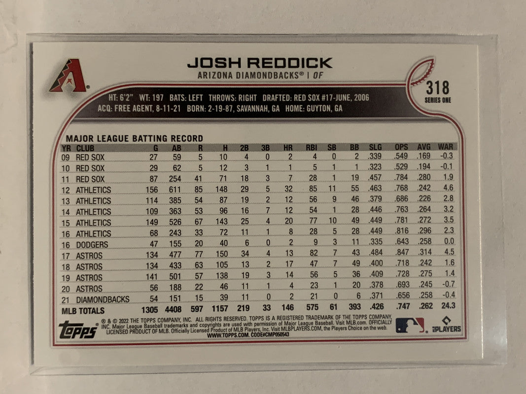 #318 Josh Reddick Arizona Diamondbacks 2022 Topps Series 1 Baseball Card MLB