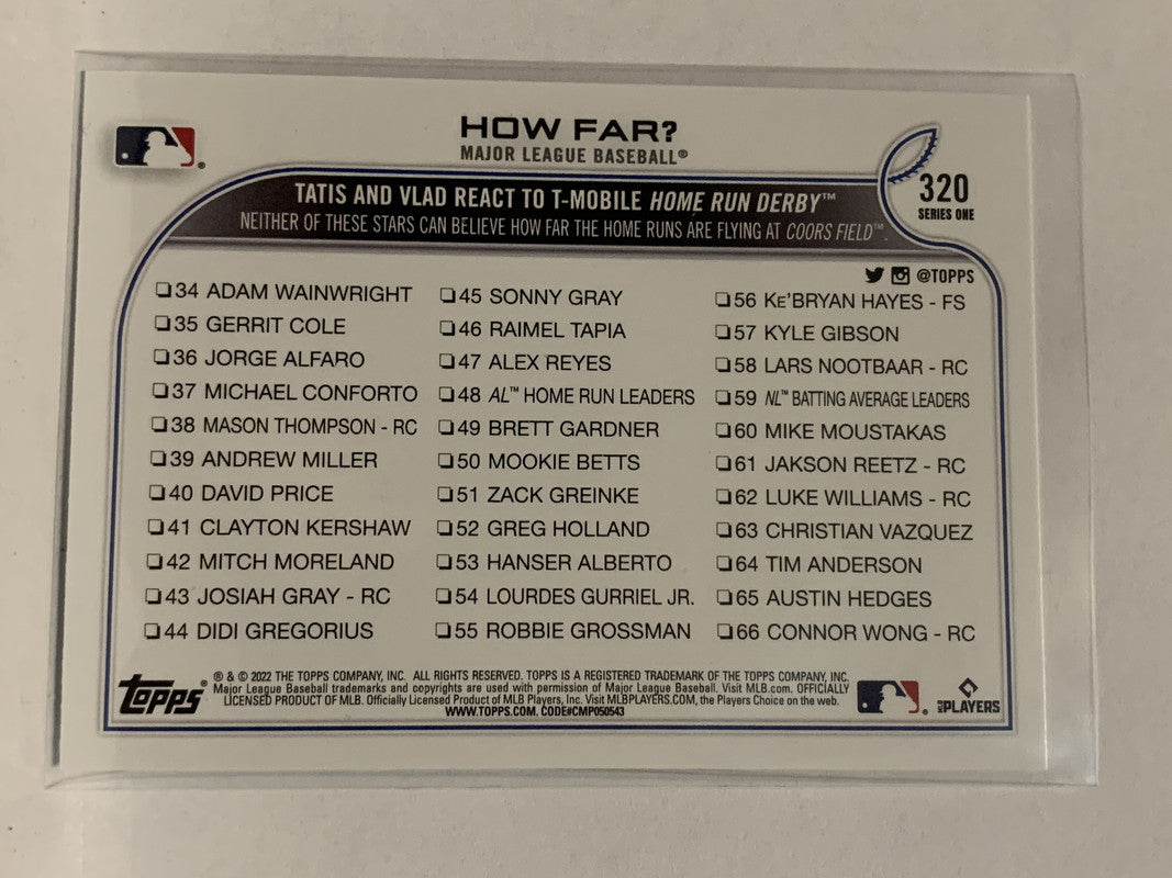 #320 How Far Tatis and Vlad React 2022 Topps Series 1 Baseball Card MLB