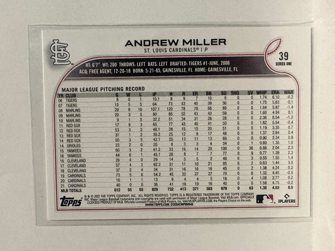 #39 Andrew Miller St Louis Cardinals 2022 Topps Series One Baseball Card