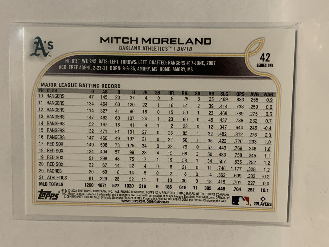 #42 Mitch Moreland Oakland Athletics 2022 Topps Series 1 Baseball Card MLB