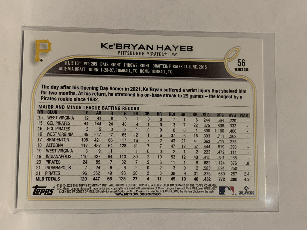 #56 Ke'Bryan Hayes Future Stars Pittsburgh Pirates 2022 Topps Series 1 Baseball Card MLB