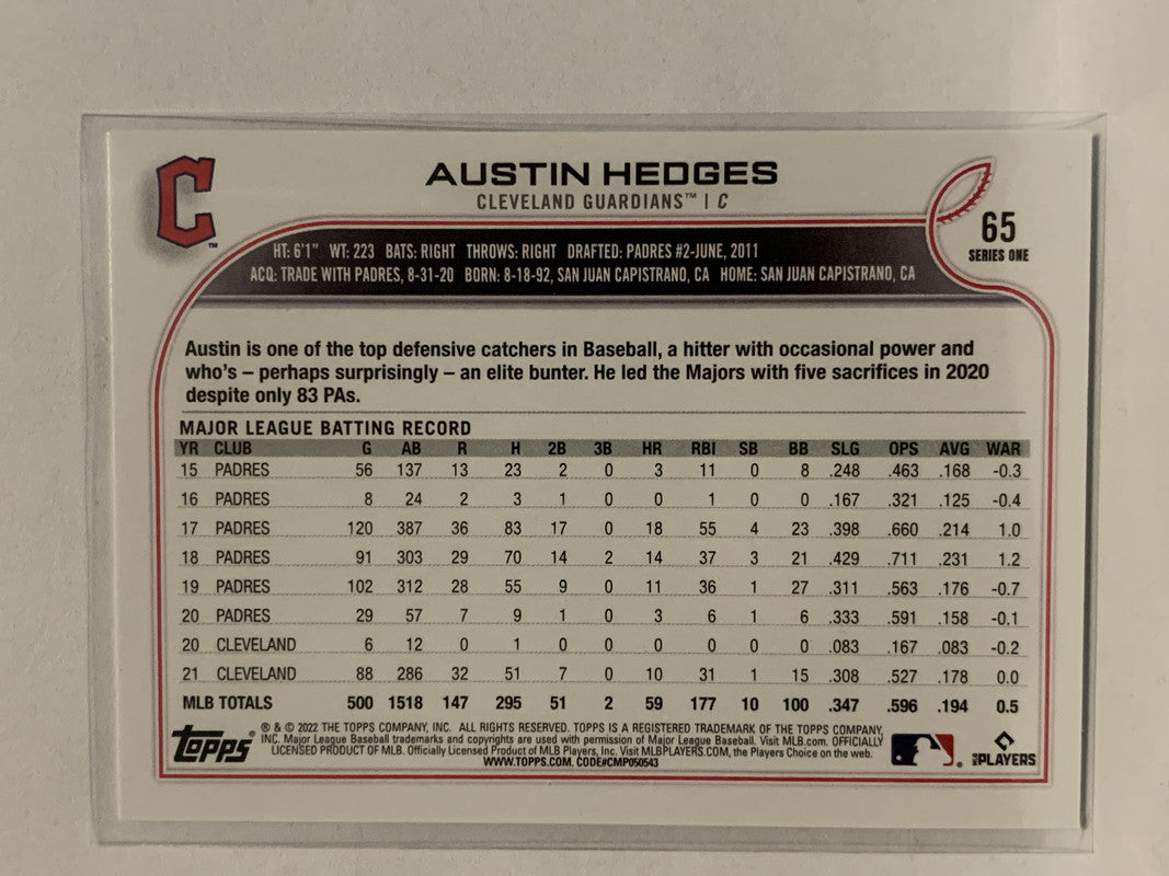 #65 Austin Hedges Cleveland Guardians 2022 Topps Series 1 Baseball Card MLB