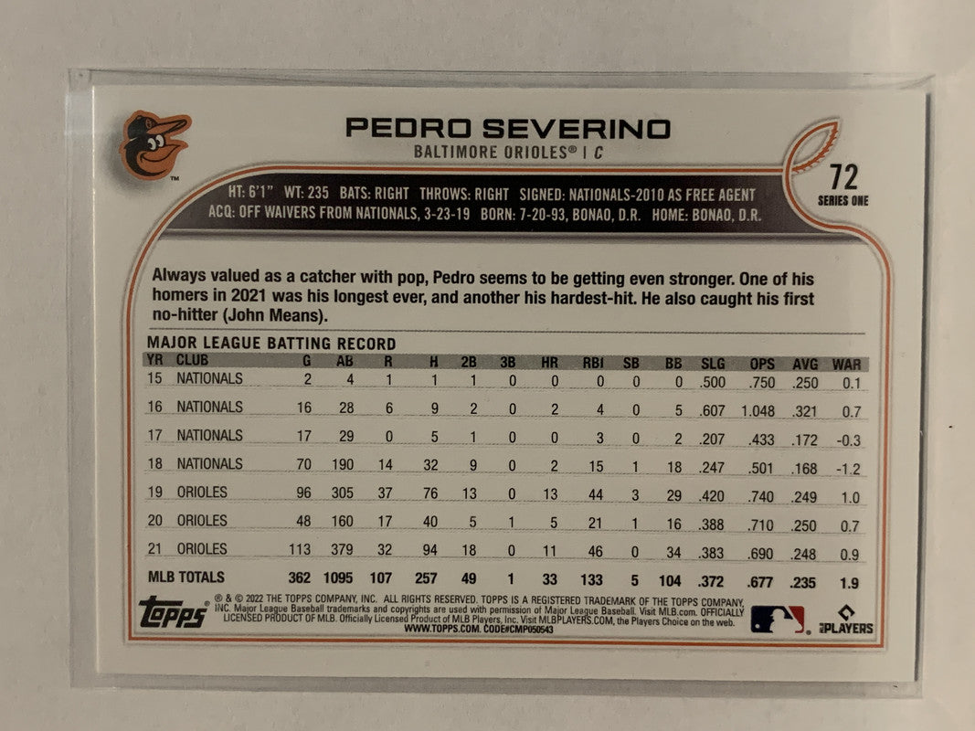 #72 Pedro Severino Rainbow Baltimore Orioles 2022 Topps Series 1 Baseball Card MLB