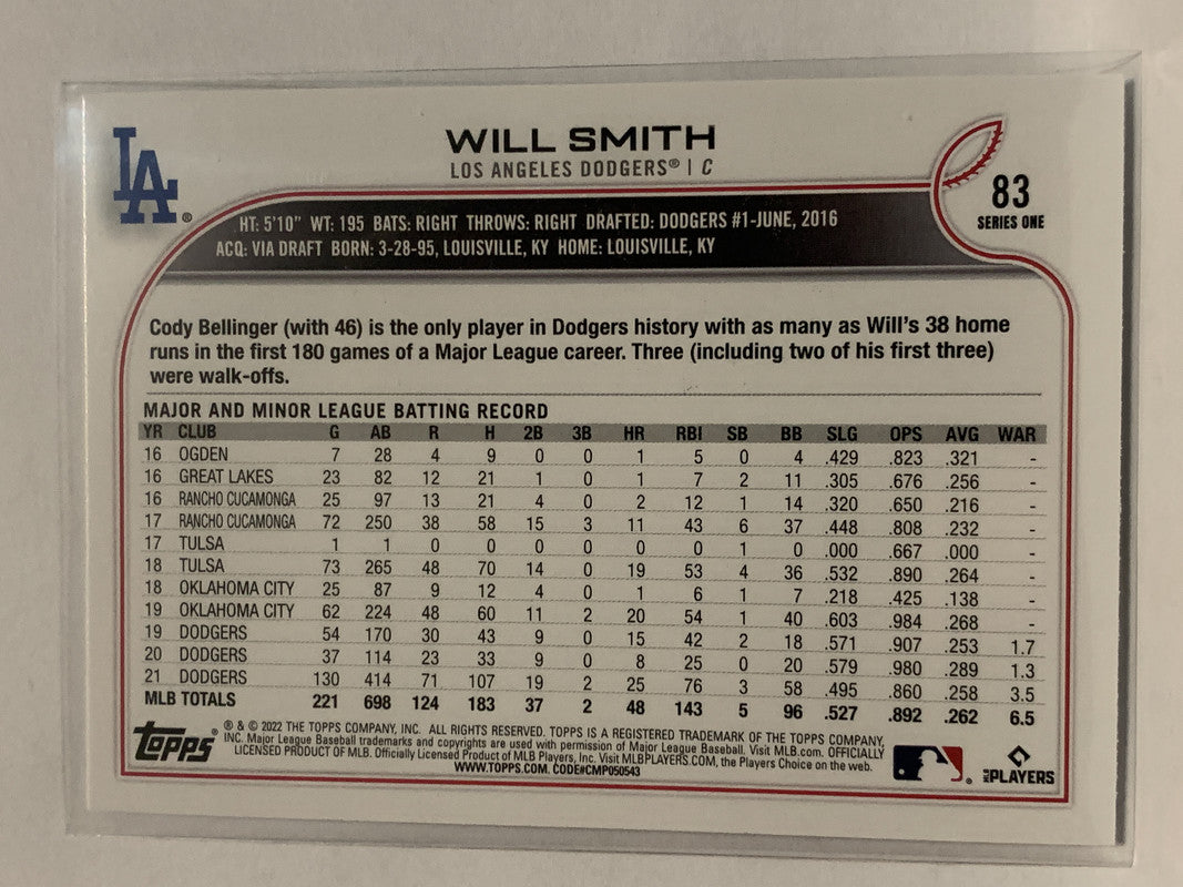 #83 Will Smith Los Angeles Dodgers 2022 Topps Series 1 Baseball Card MLB
