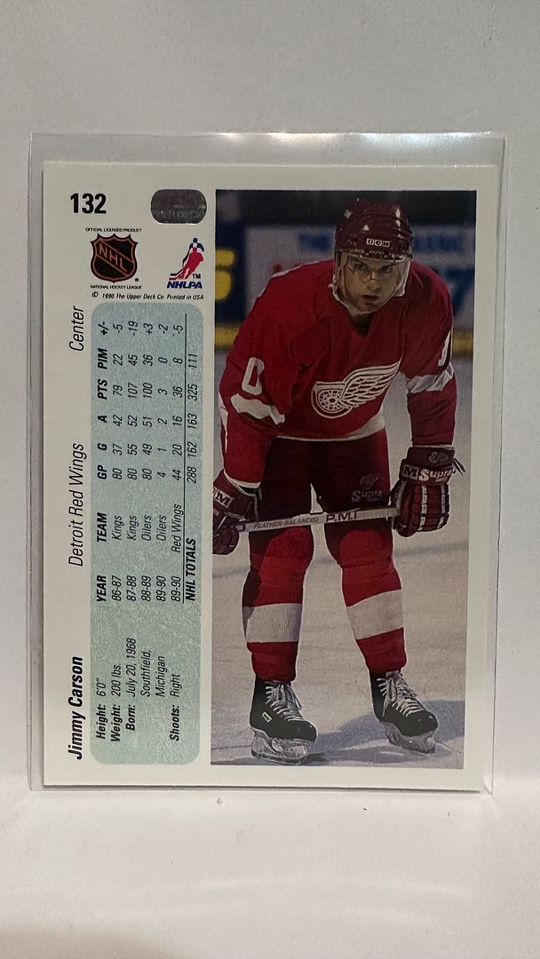 #132 Jimmy Carson Detroit Red Wings 90-91 Upper Deck Hockey Card
