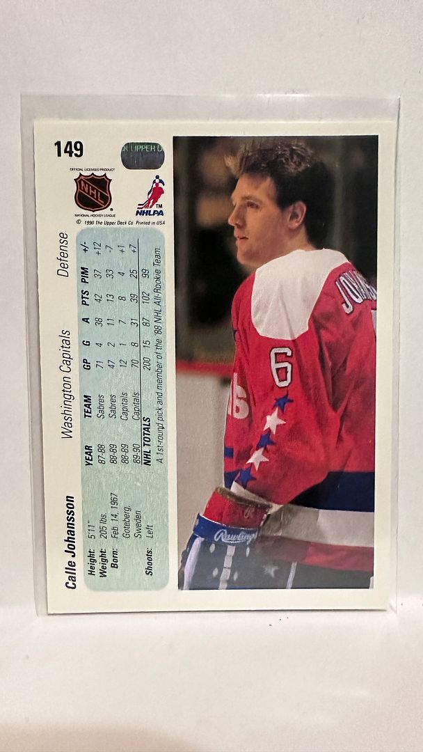 #149 Calle Johansson Washington Capitals 90-91 Upper Deck Hockey Card