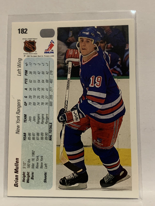 #182 Brian Mullen New York Rangers 1990-91 Upper Deck Hockey Card NHL