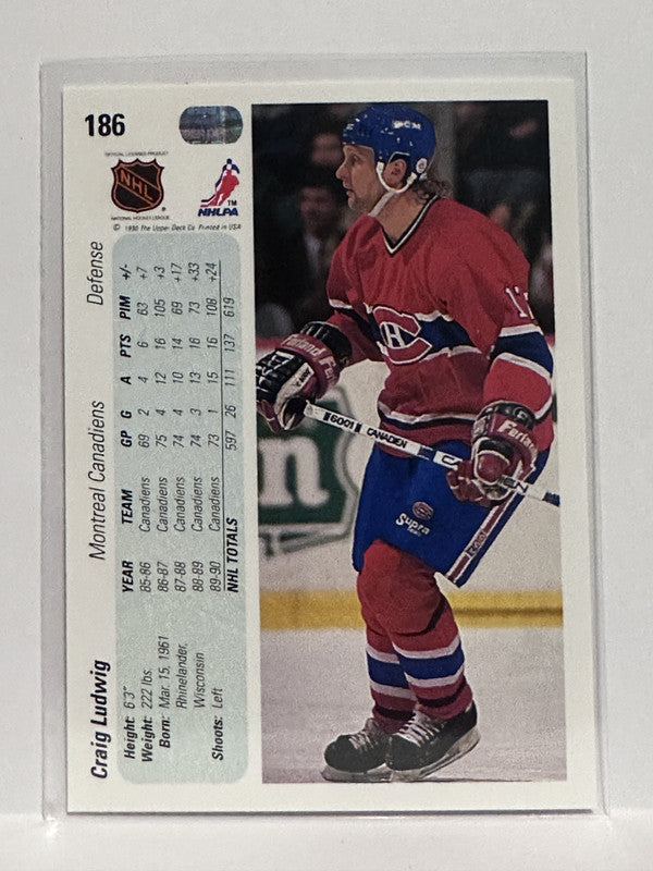 #186 Craig Ludwig Montreal Canadiens 90-91 Upper Deck Hockey Card