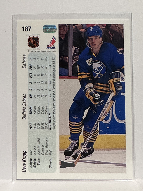 #187 Uwe Krupp Buffalo Sabres 90-91 Upper Deck Hockey Card