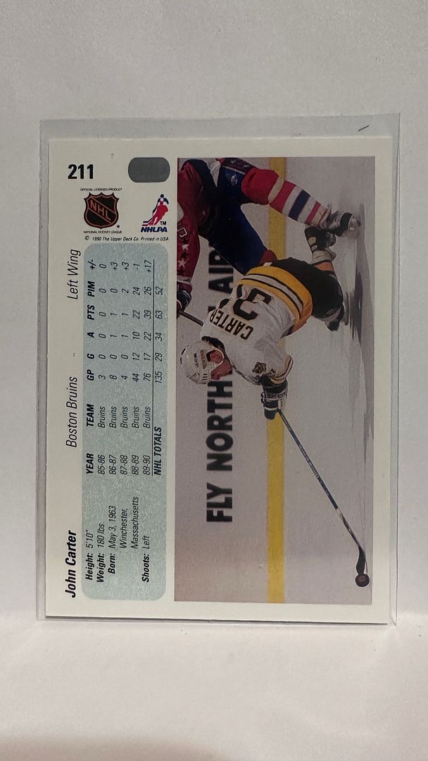 #211 John Carter Boston Bruins 90-91 Upper Deck Hockey Card